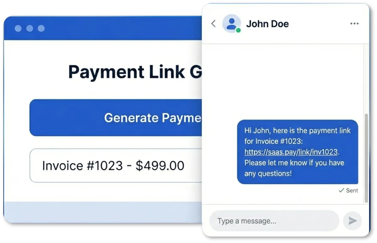 Generá y enviá un link de pago en segundos para que el cliente pague sin fricción ni pasos innecesarios.