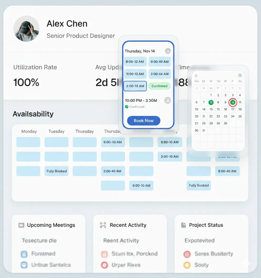 Muestra en tiempo real los horarios libres para que el contacto elija sin fricción.